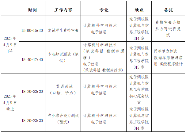 公司 2025年硕士研究生招生复试采取线下复试的形式进行。由学院根据学校研究生招生工作领导小组规定的复试时间节点完成第一志愿及调剂生源的复试工作。资格审查、复试内容及要求、复试成绩计算及要求可参考《谈球吧 2025年硕士研究生招生考试复试工作办法》/info/1107/9115.htm。